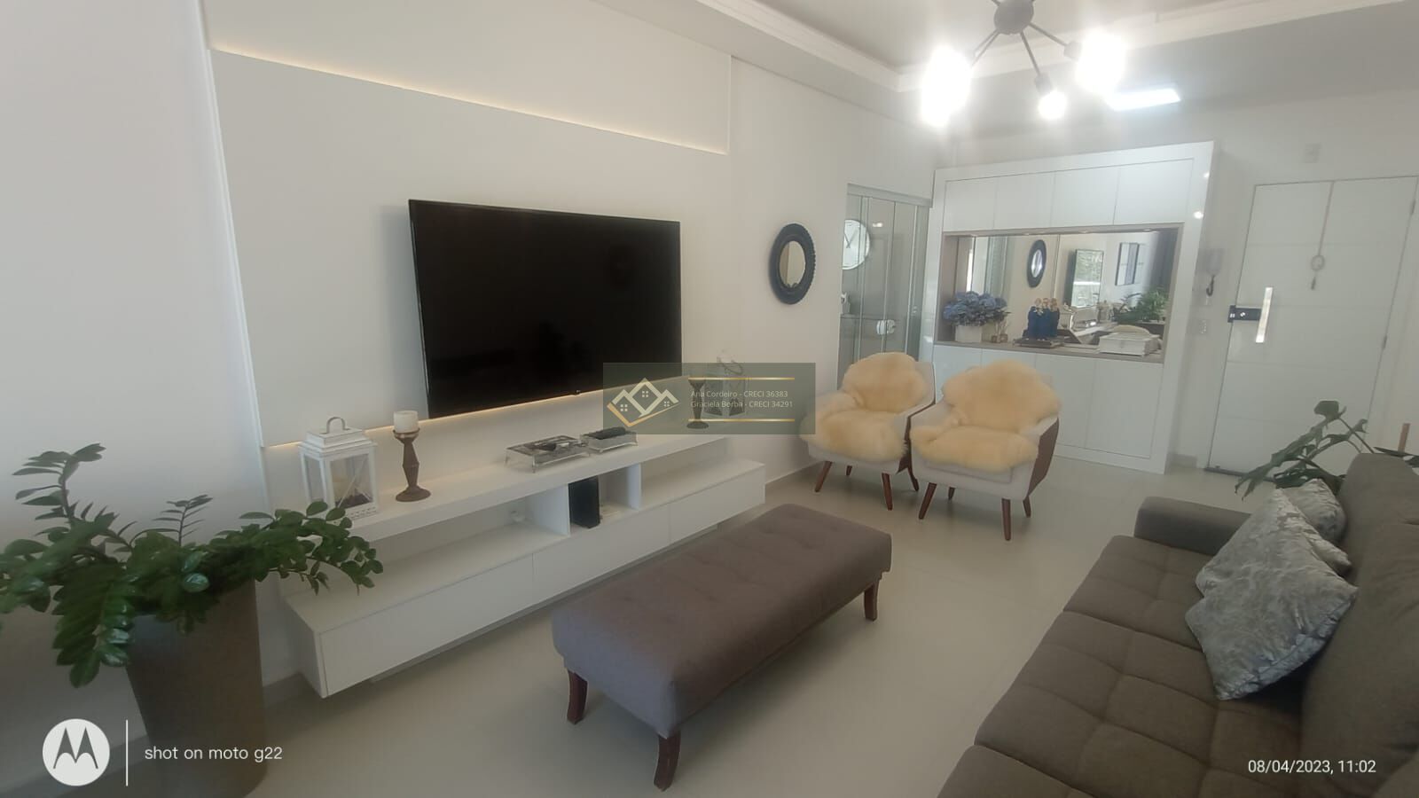 São dois dormitórios mobiliados, sendo 1 suíte, banheiro social, sala de estar e sala de tv, cozinha, cozinha gourmet, amplo terraço, ótima iluminação, com sol da manhã e tarde. Mobiliada com móveis planejados e muito bem decorada.